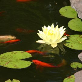 Mise en place d’un étang de baignade de taille moyenne (surface de 20m²), comprenant une installation de filtration naturelle et la disposition de plantes exotiques, nénuphars et roseaux